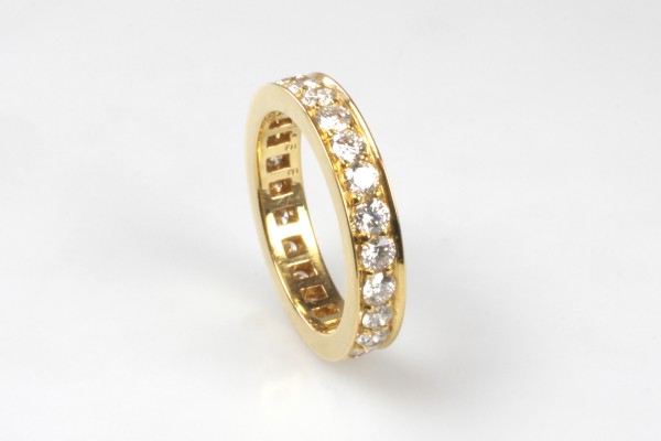 Ring aus 750/000 Gelbgold 5.8gr., 24 Brillanten zus. 1.58ct Feinweiß Lupenrein (fw/if-vvs).