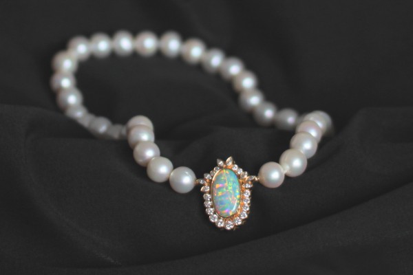 Colliermittelteil 750/000 Gelbgold, ein feiner Opal und Brillanten.