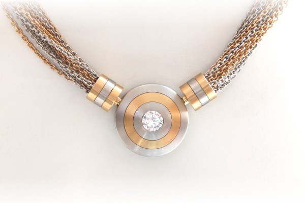 Collier aus 950/000 Platin 19.6gr, 750/000 Gelbgold 6.10gr, Brillant hochfeines Weiß (hfw/vsi) 0.71ct.