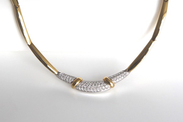 Brillantcollier 750/000 Gelbgold/Weißgold 47.0gr, Brillanten Feinweiß (fw/if-vvs) 1.30ct