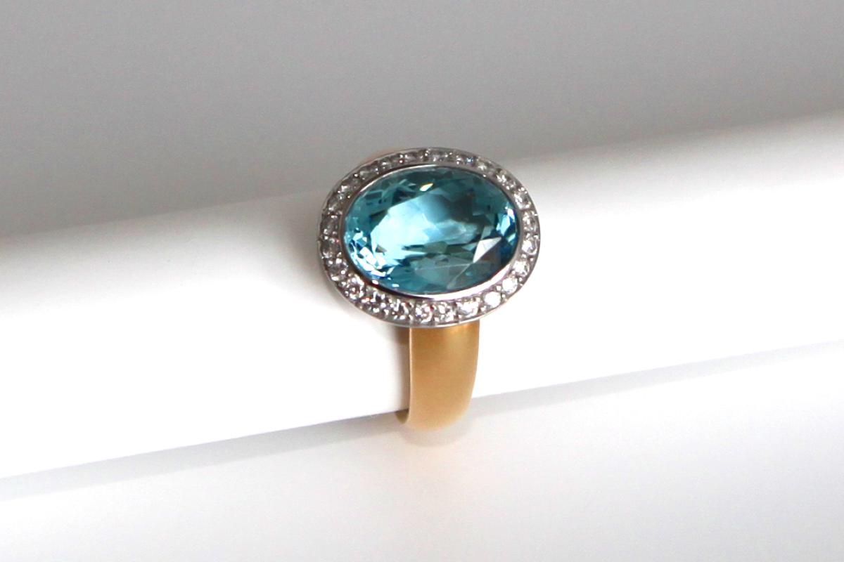 Aquamarinring aus Gelbgold/Weißgold